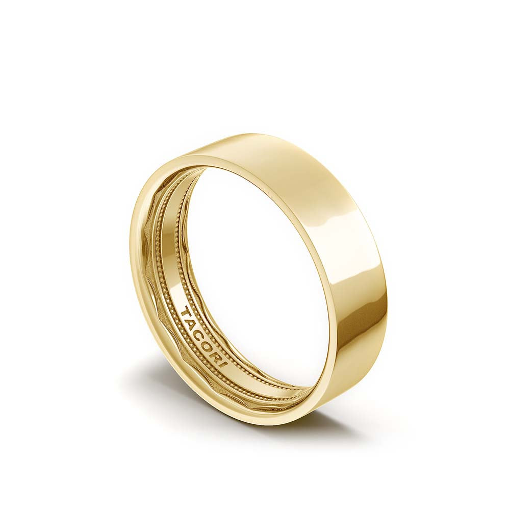 18k yellow gold 6mm classic flat high polish wedding with a sculpted crescent interior