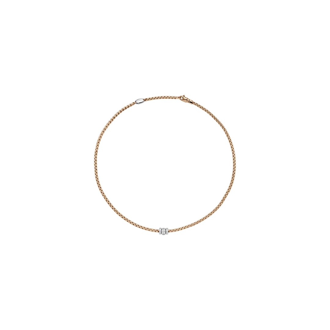 This necklace features elegant rondels, each set with shimmering diamonds for a refined touch of sparkle.