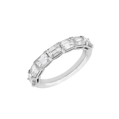 This elegant band showcases a sleek, straight row of baguette-cut diamonds, offering a refined and timeless look.