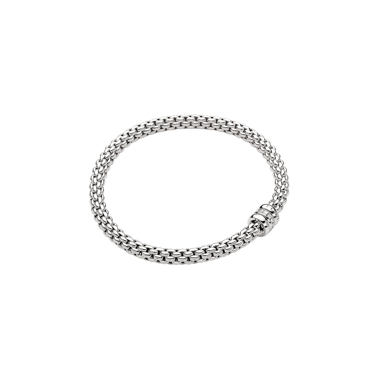 This elegant bracelet features three rondels—one adorned with pavé-set diamonds—flanked by two polished solid white gold rondels. A sophisticated blend of texture and shine, perfect for everyday luxury.