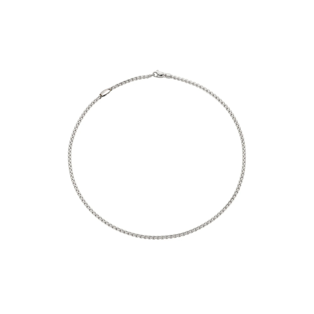 This simplistic necklace is crafted with a solid white gold foundation, offering a refined and timeless look perfect for everyday elegance or effortless layering.