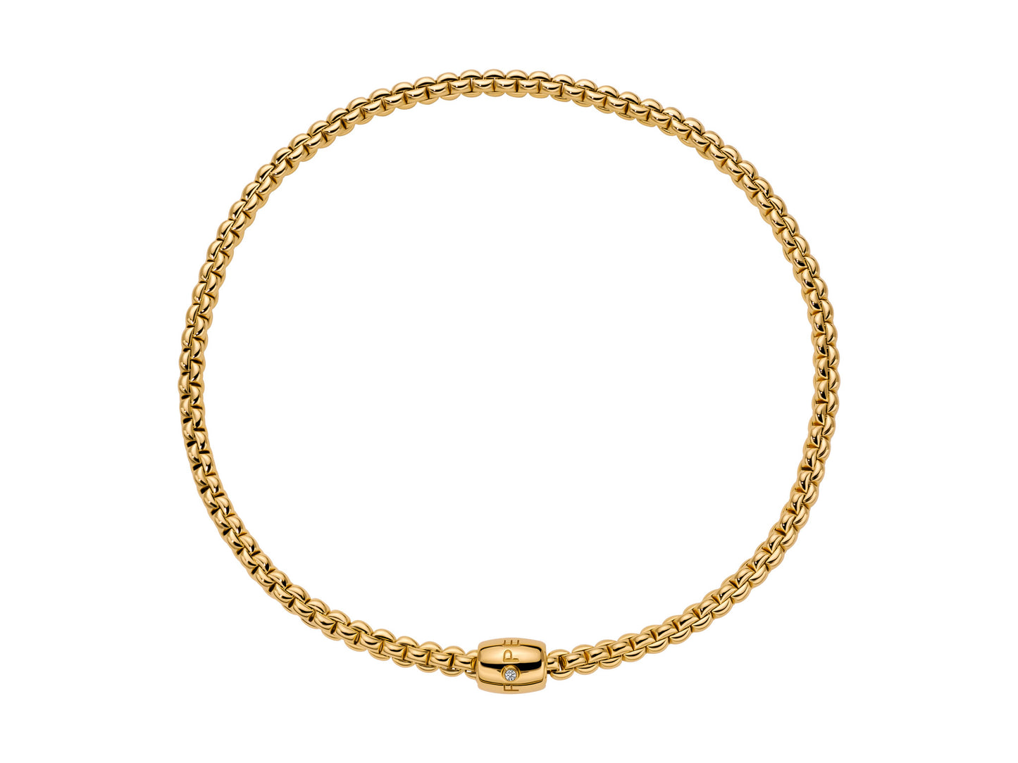 This yellow gold necklace offers a classic silhouette that effortlessly complements any look.