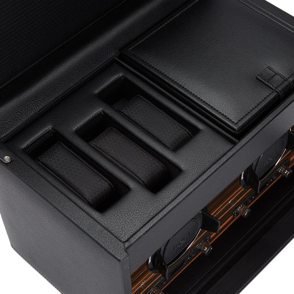 Take your fine timepieces for a ride in a Roadster. Aged wood dashboards, chrome spoked wheels, leather that is glove soft. Roadster - inspired by the best of British motorcars, Jaguar, Aston Martin, Bristol and the like. Turning your watch perfectly to a precise number of turns. Ebony macassar polished wood, the perfect backdrop for your watch.