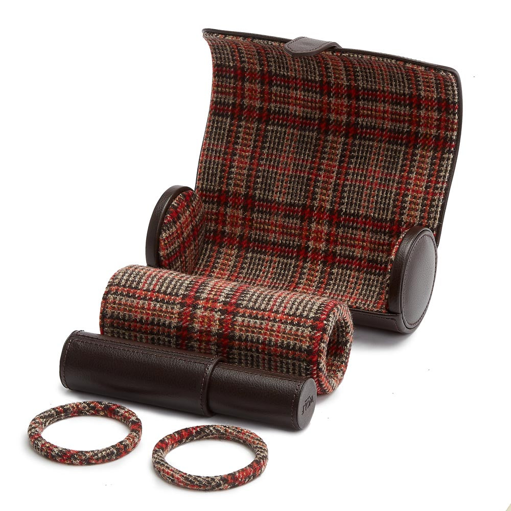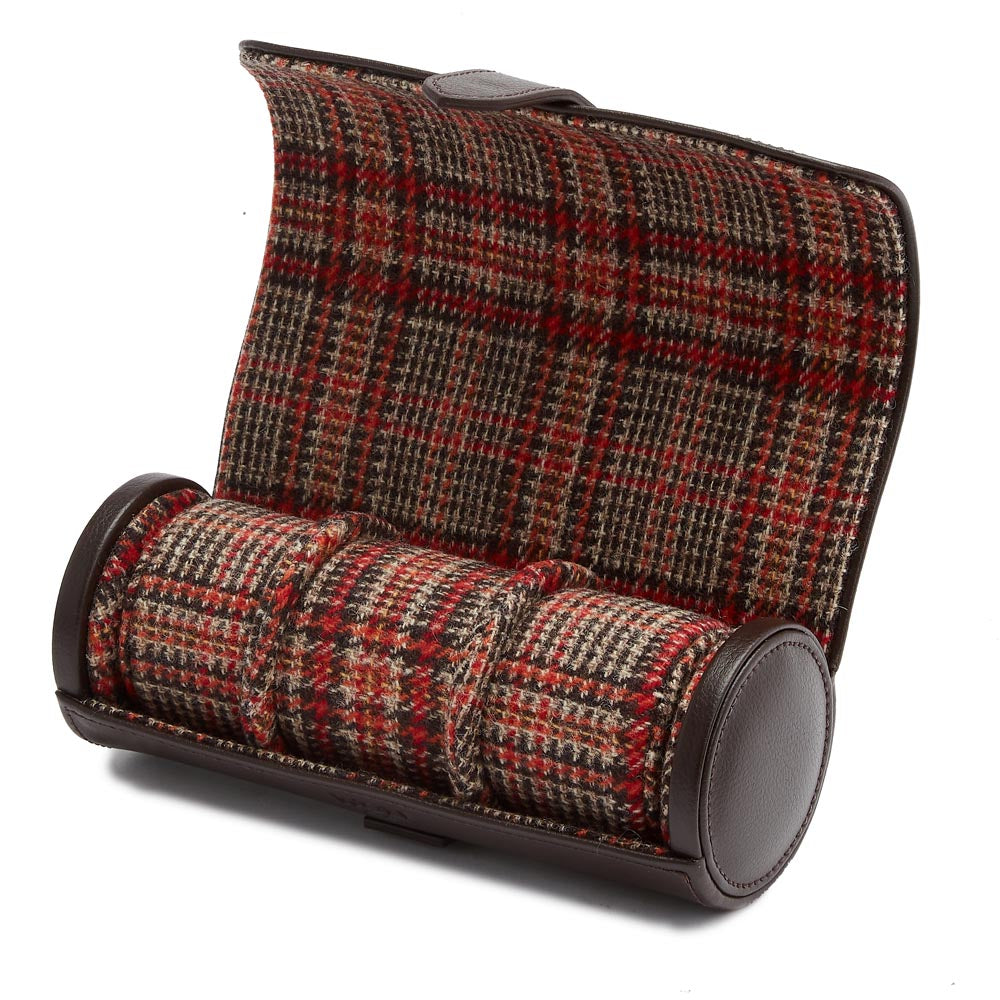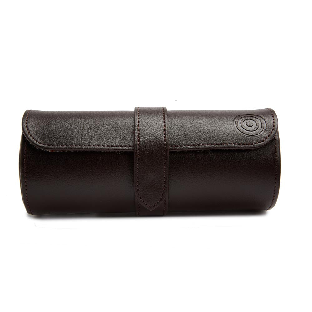 The WM Brown Watch Roll with Cigar Case is handcrafted in classic smooth brown leather and Negroni tweed lining. Patented Watch Guards keep your timepieces protected while traveling.
