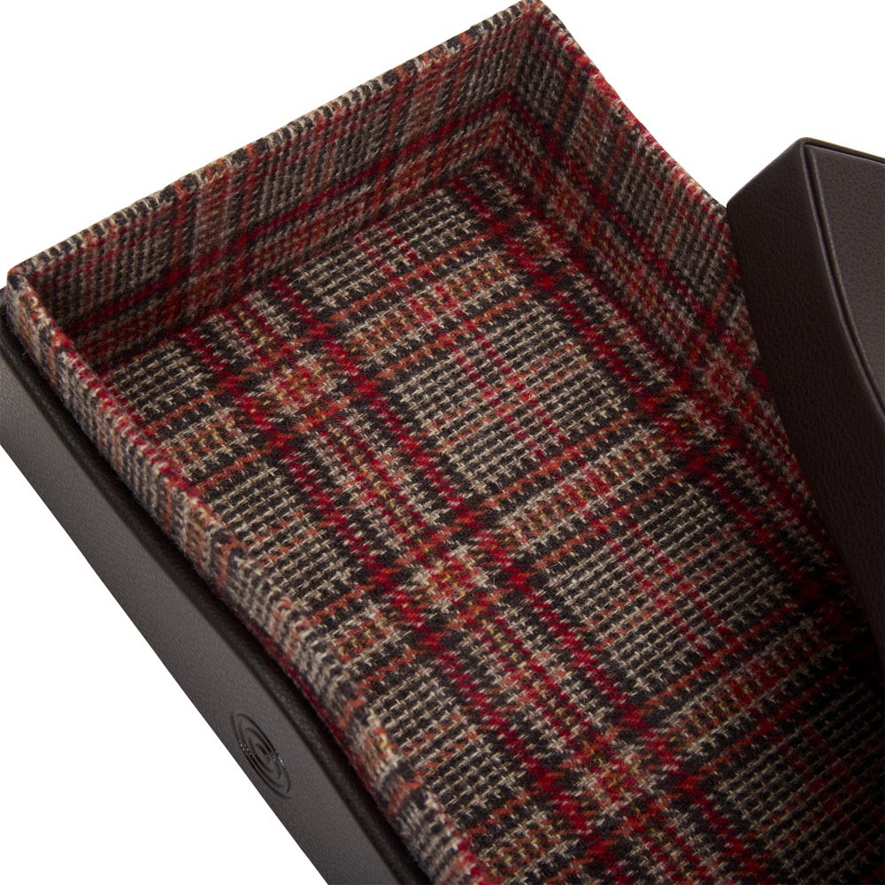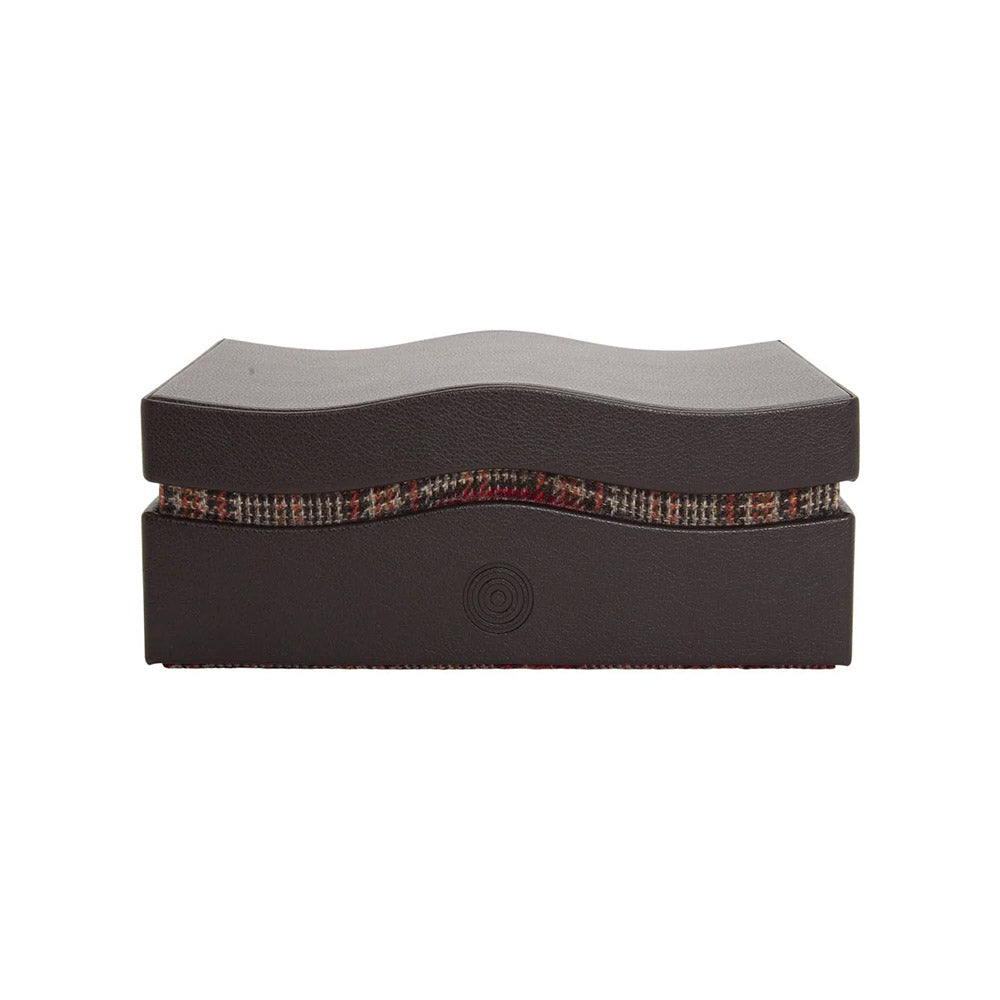 The WM Brown x WOLF collaboration is here! Known for his impeccable taste in fashion and love of watches, founder and editor of WM Brown Matt Hranek has partnered with WOLF to craft a collection of products made for the modern man. The WM Brown Accessory Box hand crafted with a brown pebble vegan leather exterior and ‘Negroni tweed’ lining features a unique stylish wave design lid, to make a statement on your sideboard or chest of drawers. Perfect for all your valuables.