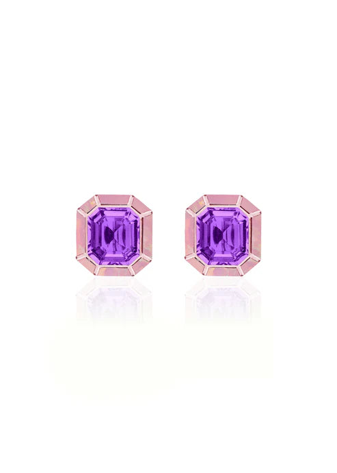 Striking yet compact, the Melange Inlay Studs showcase an emerald-cut silhouette framed in vivid contrast- a bold essential with everyday edge.