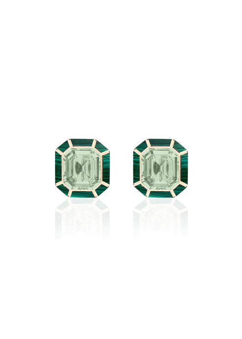 Striking yet compact, the Melange Inlay Studs showcase an emerald-cut silhouette framed in vivid contrast- a bold essential with everyday edge.