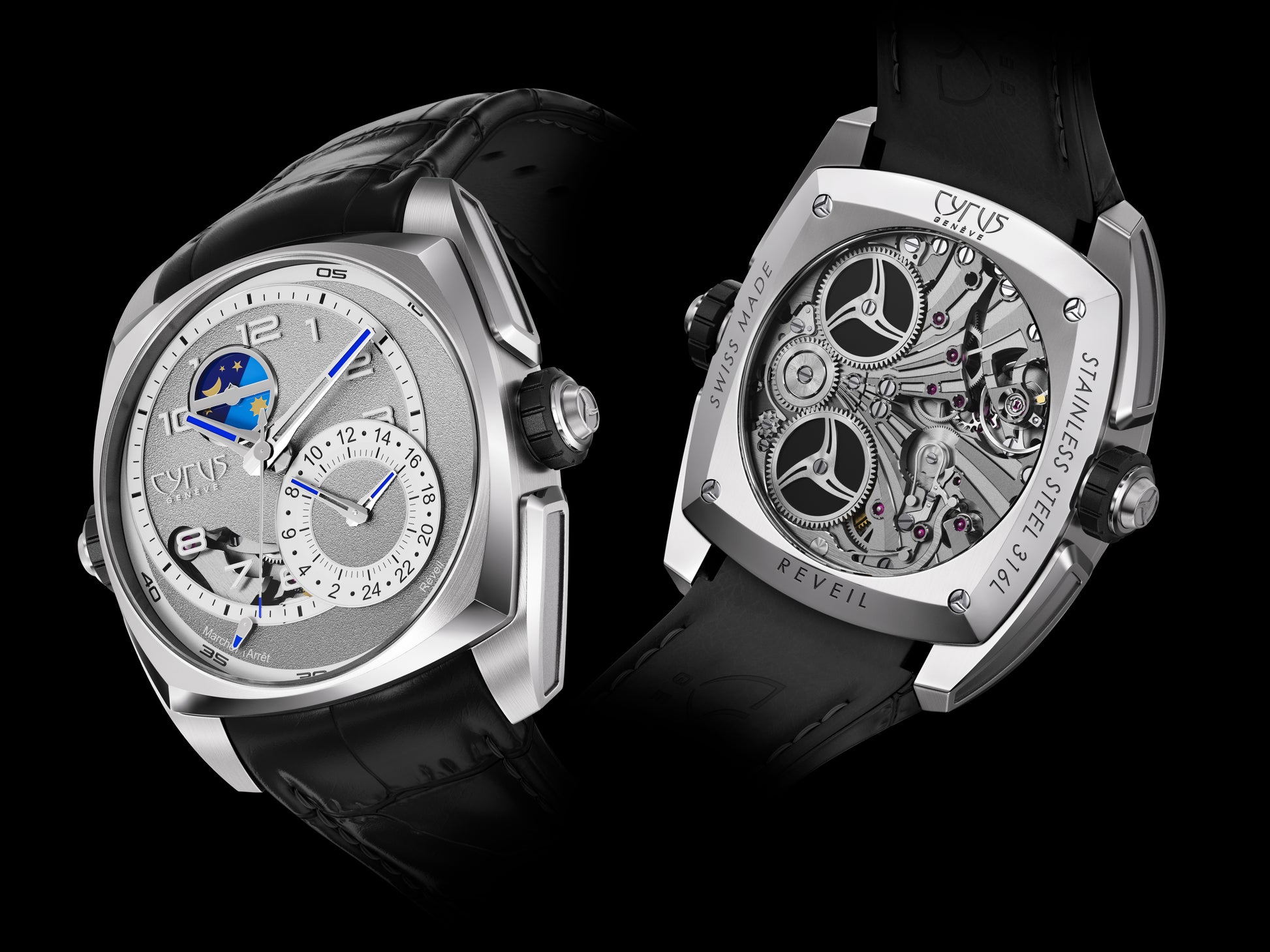 With hour/minute, 24-hour alarm and day/night indicator functions, the watch is powered by the in-house manufacture hand-winding calibre CYR1280, with double barrel, offering 72-hour power reserve.