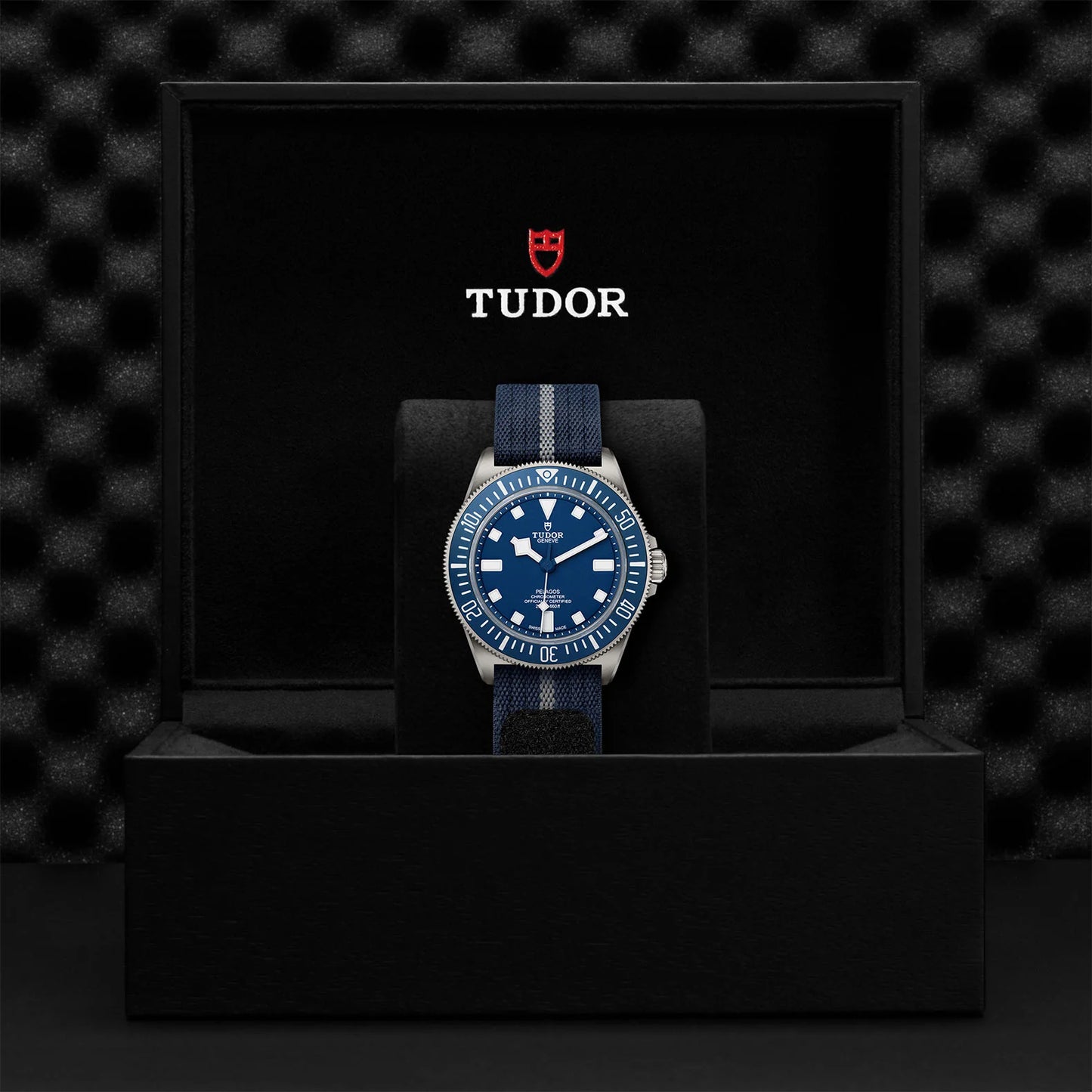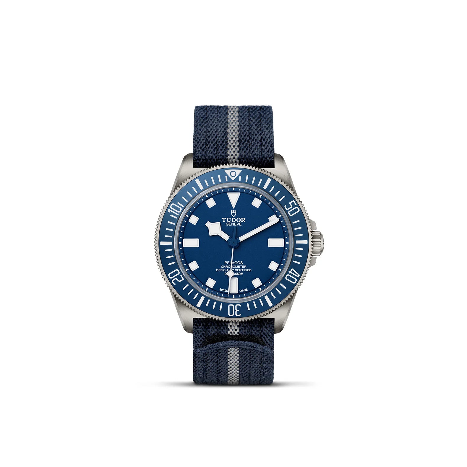 Manufacture Calibre MT5602 (COSC) Self-winding mechanical movement with bidirectional rotor system 42mm titanium case, Navy blue fabric strap