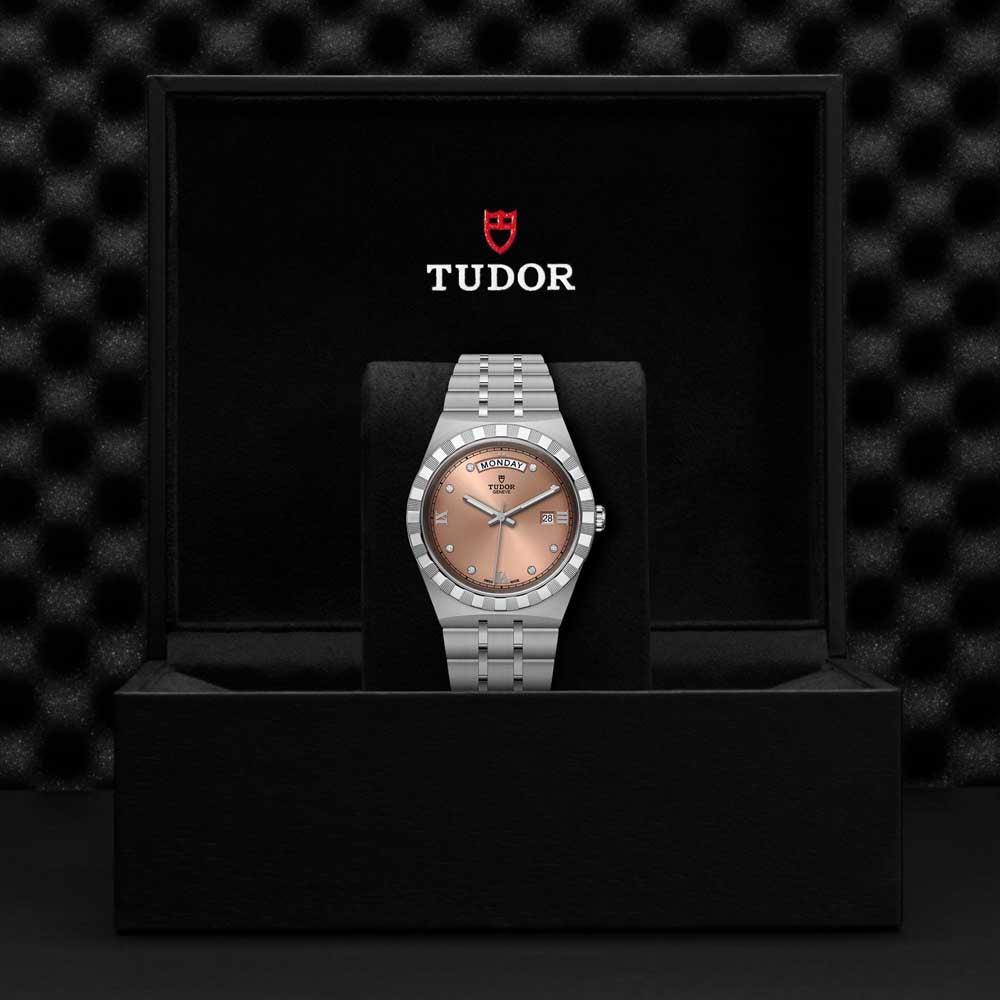 Royal is a name first used by TUDOR in the 1950s to emphasize the superior quality of its watches. The TUDOR Royal range is part of this heritage in that it offers automatic sport-chic watches with integrated bracelets that are as affordable as they are uncompromising. Cutting-edge technical performance and refined aesthetic are characteristic of this range, which sits at the crossroads between classic and sports watches and comes in stainless steel or stainless steel and gold and is offered in 4 sizes with a wide range of dials.