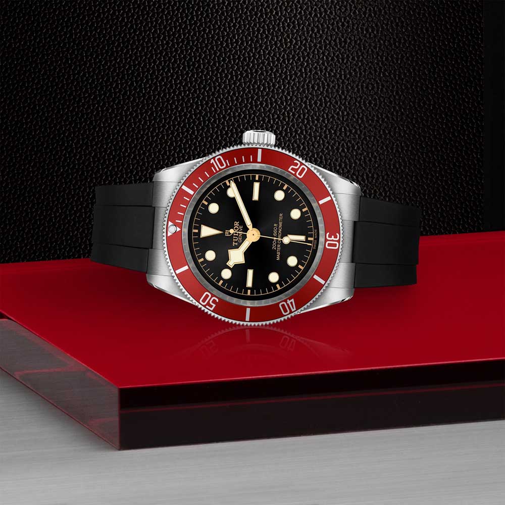 The Black Bay celebrates 60 years of diving watches with extraordinary heritage. The iconic model inherits the general lines, as well as the domed dial and crystal from the first TUDOR diving watches. It borrows the characteristic angular hands, known as snowflake, from the watches delivered in large quantities to the French National Navy in the 1970s.