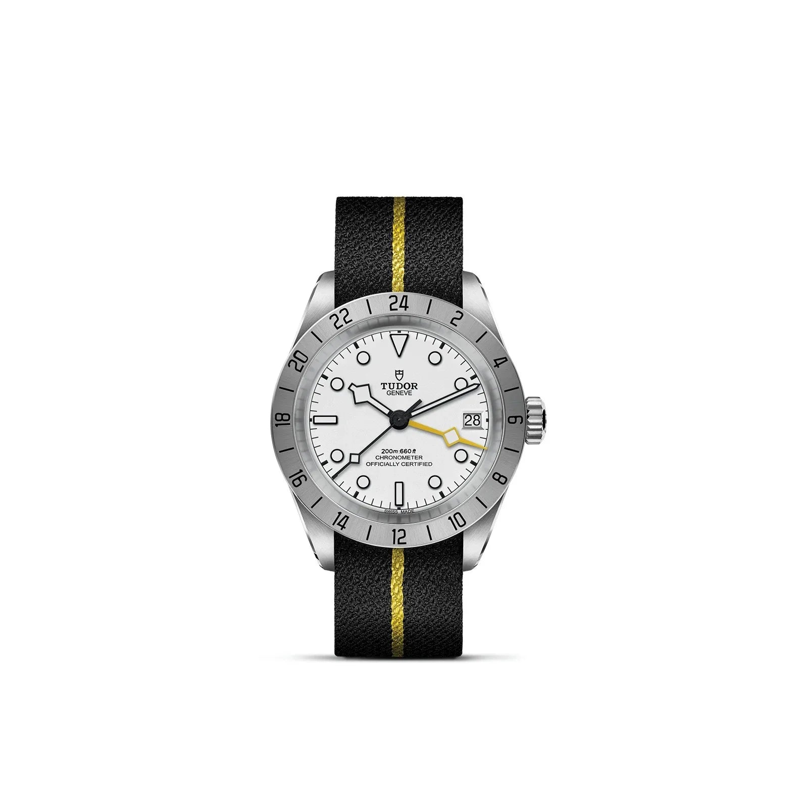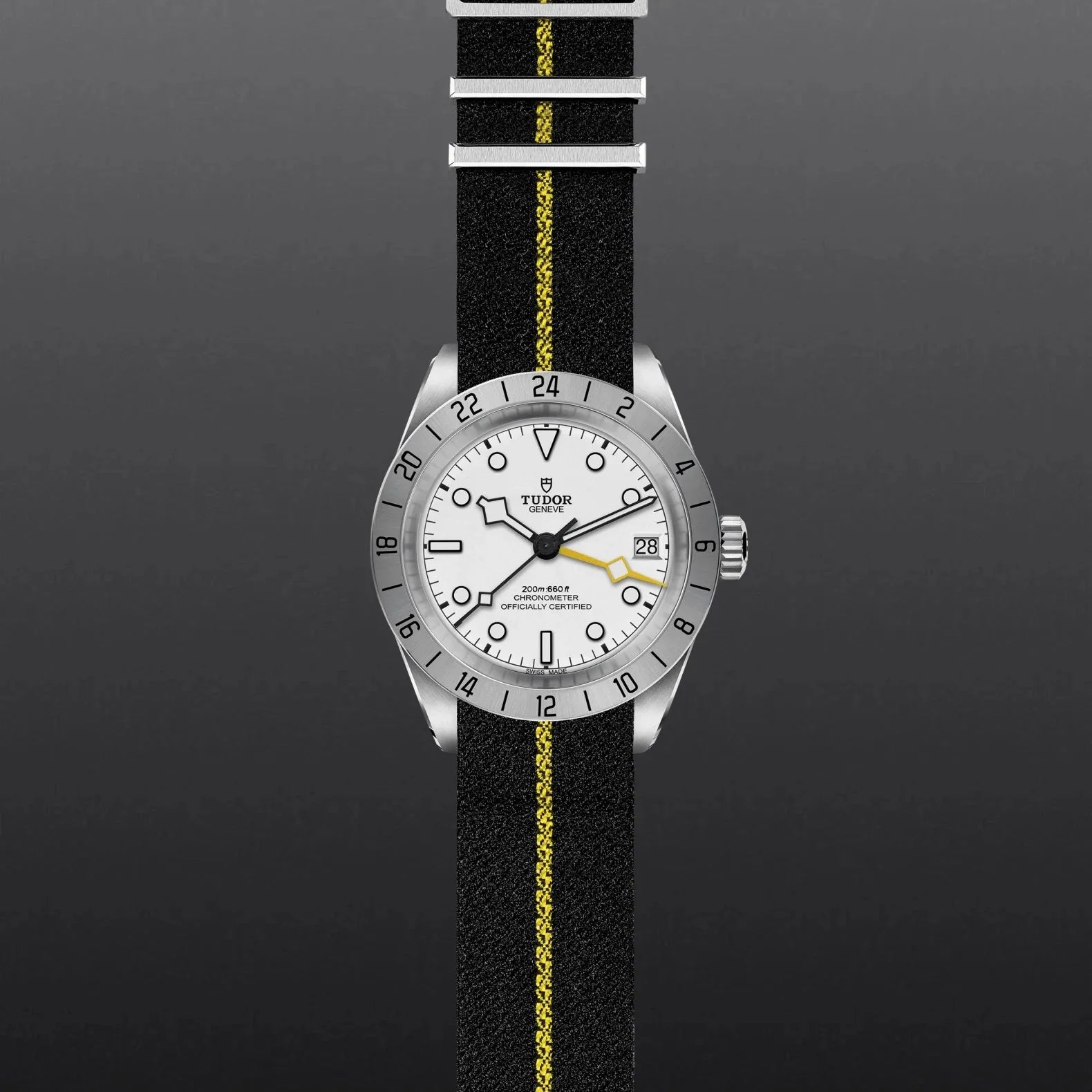 Manufacture Calibre MT5652 (COSC) Self-winding mechanical movement with bidirectional rotor system Built-in architecture 39mm steel case, Black fabric strap with yellow band