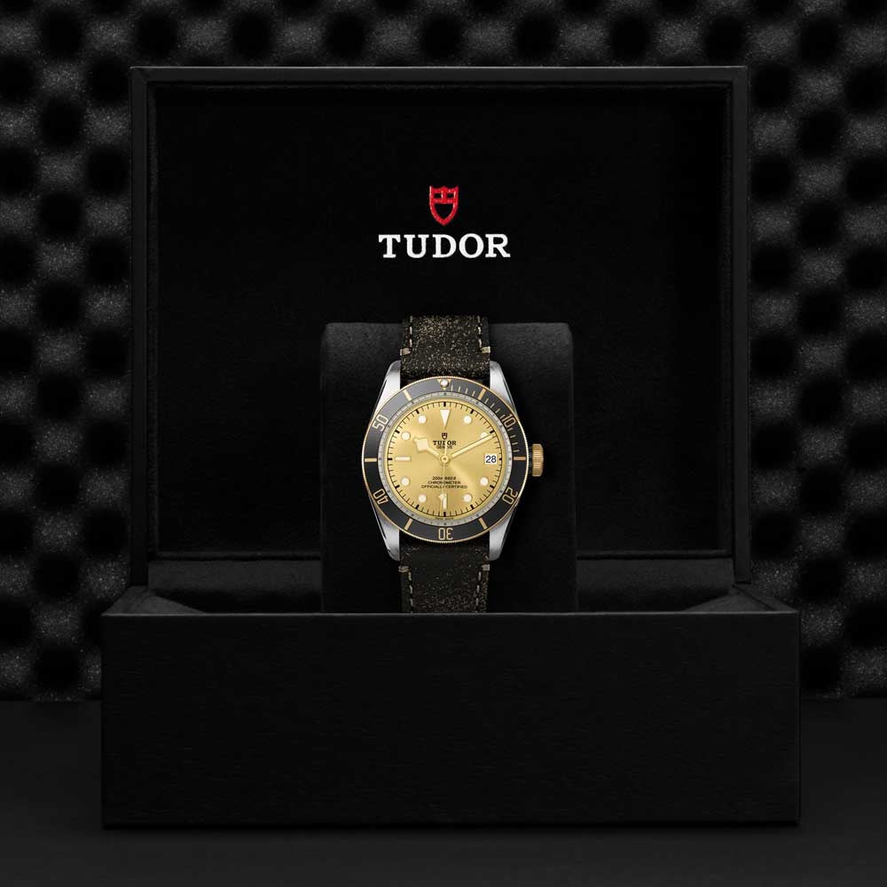 The Black Bay celebrates 60 years of diving watches with extraordinary heritage. The iconic model inherits the general lines, as well as the domed dial and crystal from the first TUDOR diving watches. It borrows the characteristic angular hands, known as snowflake, from the watches delivered in large quantities to the French National Navy in the 1970s.