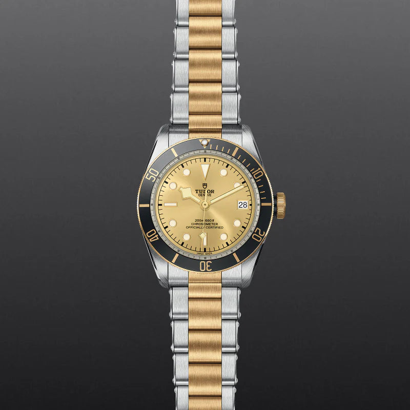 The Black Bay celebrates 60 years of diving watches with extraordinary heritage. The iconic model inherits the general lines, as well as the domed dial and crystal from the first TUDOR diving watches. It borrows the characteristic angular hands, known as snowflake, from the watches delivered in large quantities to the French National Navy in the 1970s.