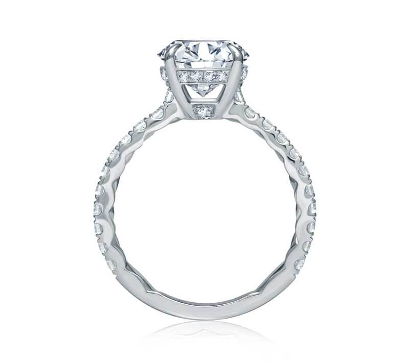 All A.JAFFE engagement rings are available in platinum, white, yellow or rose gold. A.JAFFE offers a complimentary customization service, in which they refine the setting to fit the shape and size of your center stone, is available for every style. They'll also design a matching wedding band if there is not one already available.