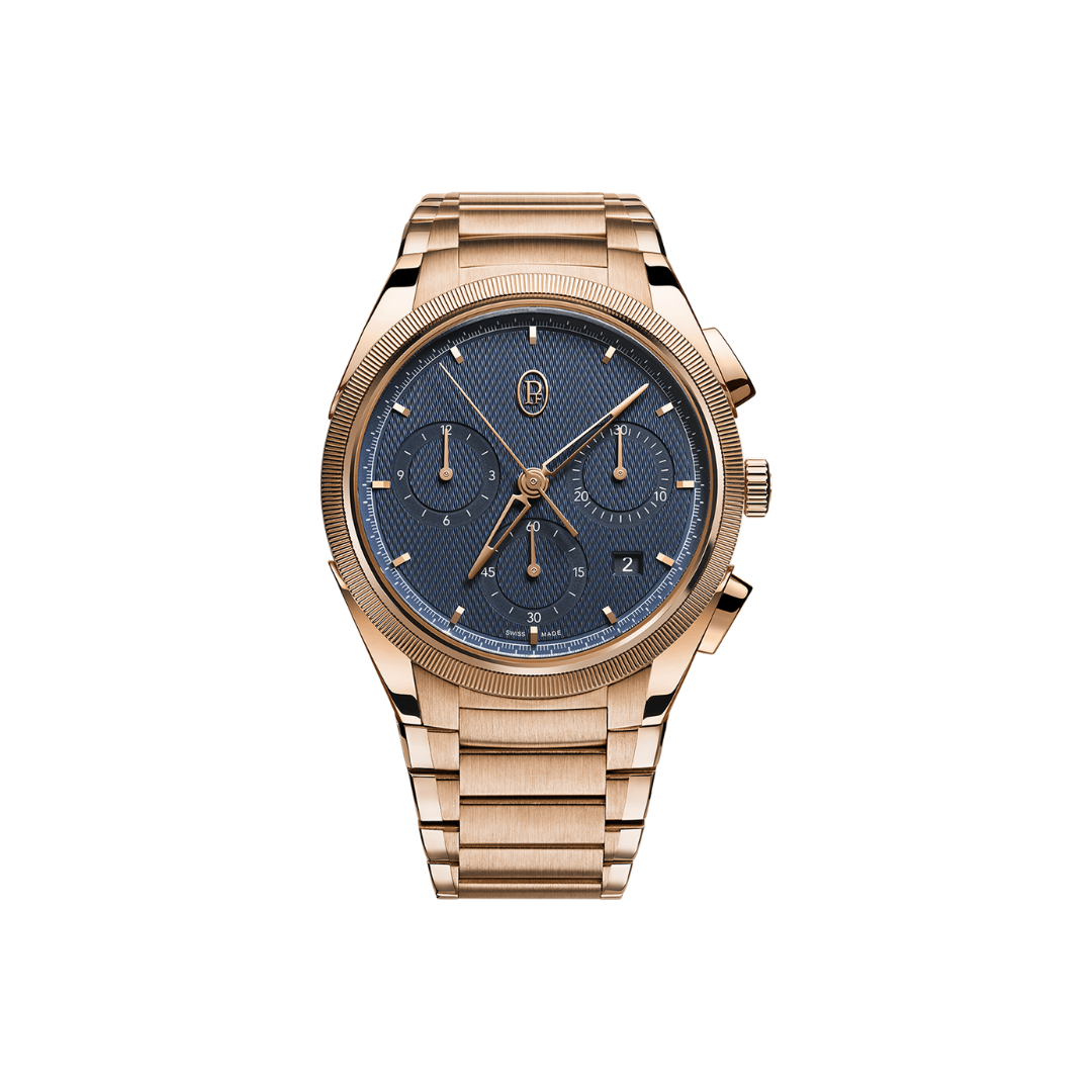 At 42 mm, the TONDA PF Chronograph is a perfect example of how a very special design can be adapted to the requirements of a complication. The virtually smooth surface contrasts with the finely sand-blasted minute track and the counters which are encircled in a slightly darker blue.